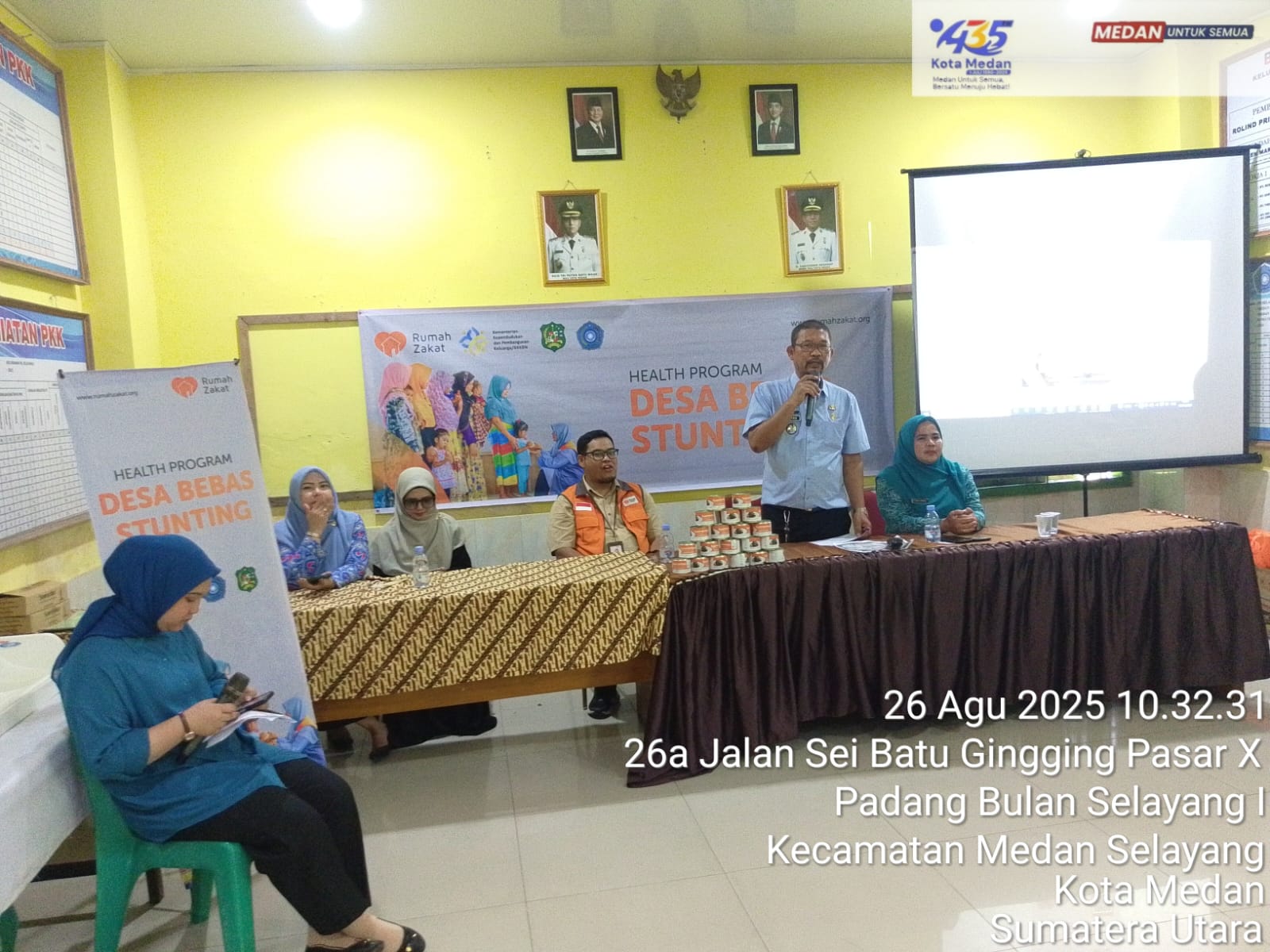Acara yang berlangsung pagi ini dihadiri oleh berbagai elemen penting masyarakat, termasuk Lurah PB Selayang I Bapak Rolind Prihady, ST, Kepala Cabang Rumah Zakat Medan Bapak Agus Salim Siregar, S.Pdi, Kepala Klinik Rumah Zakat Medan Ibu Hj. Tuti Haryani, SE, serta perwakilan dari Babinsa, Bhabinkamtibmas, Babinpotdirga, Ketua TP PKK Kelurahan PB Selayang I Ny. Halimah Rolind Prihady, para kepala lingkungan, tokoh masyarakat, dan tentu saja, para penerima manfaat program, yaitu anak-anak berisiko stunting dan para lansia dhuafa.