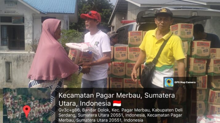 Di tengah situasi tersebut, Kepala Desa Tanjung Mulia, Rusli, menunjukkan rasa peduli dan empatinya dengan mengunjungi warga terdampak banjir dan membagikan bantuan sembako.