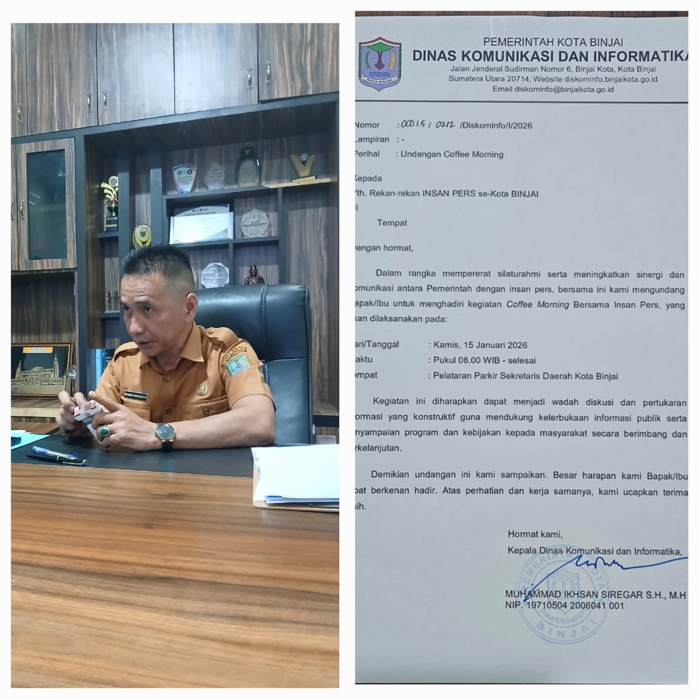 BINJAI.AnalisaOne.com|Dinas Komunikasi dan Informatika (Kominfo) Kota Binjai menggelar kegiatan Coffee Morning bersama wartawan pada Kamis, 15 Januari 2026. Kegiatan ini mengusung tema Coffee Morning bersama seluruh insan pers Kota Binjai.
