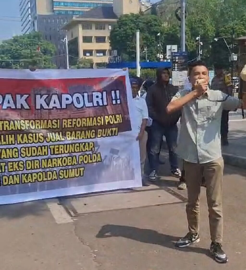 Jakarta.analisaOne.com – Sejumlah elemen mahasiswa menggelar aksi unjuk rasa yang berlangsung tertib di halaman Markas Besar Kepolisian Republik Indonesia (Mabes Polri), Jakarta, untuk menyampaikan sejumlah tuntutan terkait penanganan kasus narkotika yang belakangan menyita perhatian publik di wilayah Sumatera Utara.