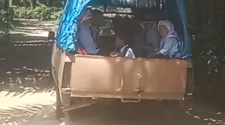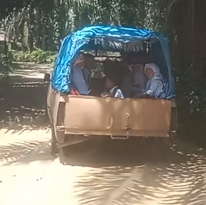 Anak-anak sekolah di daerah tersebut terpaksa diangkut menggunakan mobil jenis Chevrolet milik PT Sawit Bandar Durian (SBD) yang tidak layak untuk mengangkut orang.