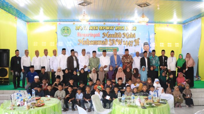 Binjai.AnalisaOne.com – Dewan Pimpinan Cabang (DPC) VII Aceh Sepakat Kota Binjai menggelar peringatan Maulid Nabi Muhammad SAW ke-1447 Hijriah dengan tema “Meneladani Rasulullah SAW dalam Mempererat Silaturahmi dan Menumbuhkan Rasa Kepedulian terhadap Sesama”. Acara yang berlangsung di Meunasah Aceh Sepakat Kota Binjai, Sabtu (6/9), mendapat apresiasi dari Pemerintah Kota (Pemko) Binjai.