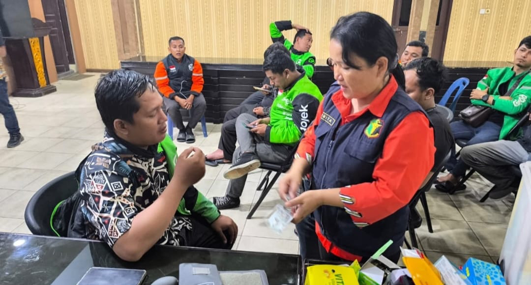 Usai pelaksanaan Do’a Bersama, kegiatan kemudian dilanjutkan dengan pengecekan kesehatan gratis oleh Dokkes Polresta Deli Serdang kepada Seluruh Driver Ojol yang hadir.(amr)
